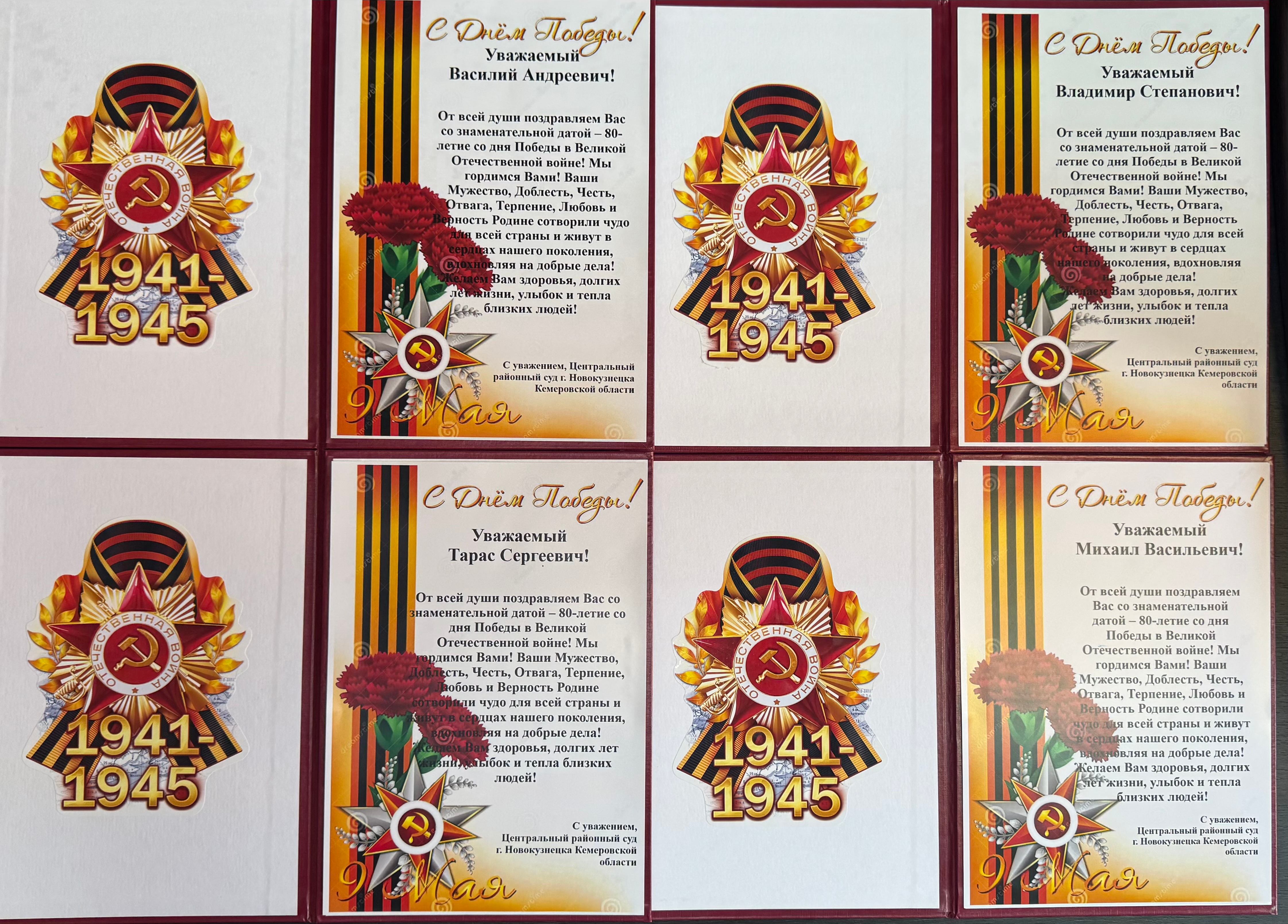В преддверии главного праздника нашей страны – Дня Великой Победы коллектив Центрального районного суда г. Новокузнецка Кемеровской области от всей души поздравил ветеранов Великой Отечественной войны! Поздравительные письма со словами благодарности за отвагу и терпение, за чистое небо и светлое бедующее, за сотворенное чудо для всей нашей страны были переданы ветеранам Великой отечественной войны. День Победы всегда будет напоминать нам, какой ценой был завоеван мир. Это праздник со слезами на глазах. К сожалению, очевидцев и участников тех событий остается все меньше. Но мы никогда не забудем о вашем подвиге, и будем передавать эту память из поколения в поколение!